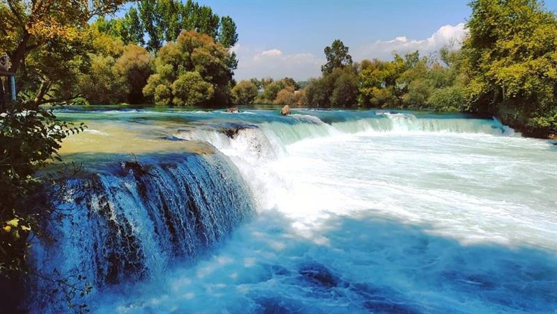 Der nächste Halt ist der berühmte Manavgat Wasserfall, der etwa 3 km vom Stadtzentrum Manavgat und 65 km von Antalya entfernt liegt. Obwohl der Wasserfall mit etwa 5 Metern Höhe nicht sehr hoch ist, beeindruckt er durch seine breite und kraftvolle Wasserströmung und gehört zu den schönsten Naturattraktionen der Region Antalya.