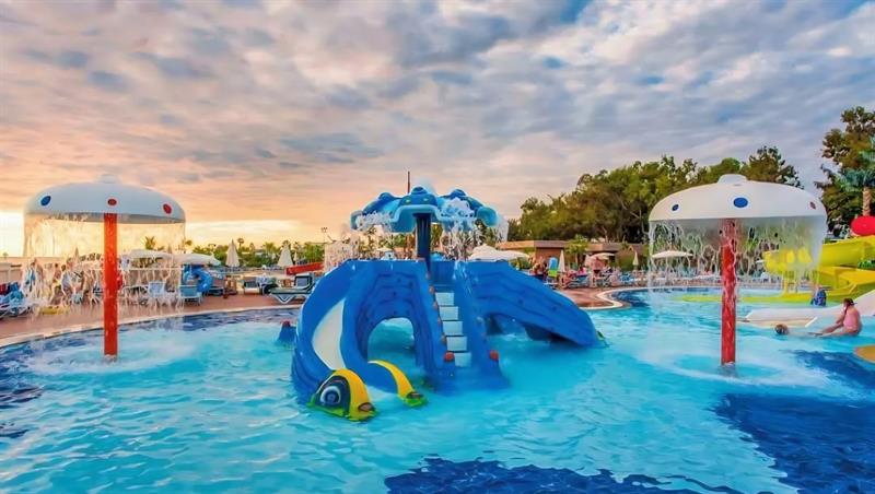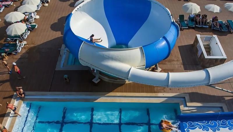 The Alanya Eftalia Aquapark features numerous water slides, large swimming pools, a wave pool, a water football area, disco and entertainment zones, restaurants, children’s pools, showers, changing rooms, free safeboxes, medical services, kids’ animations, and many other facilities. It guarantees a full day of fun, excitement, and adventure.