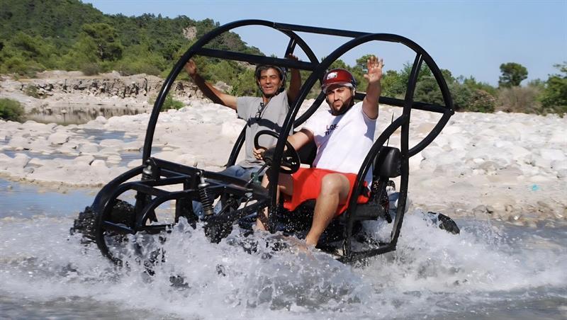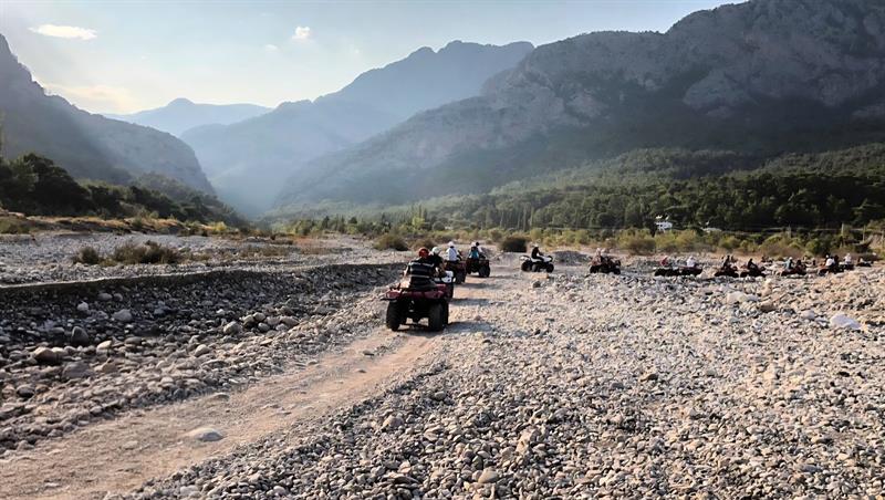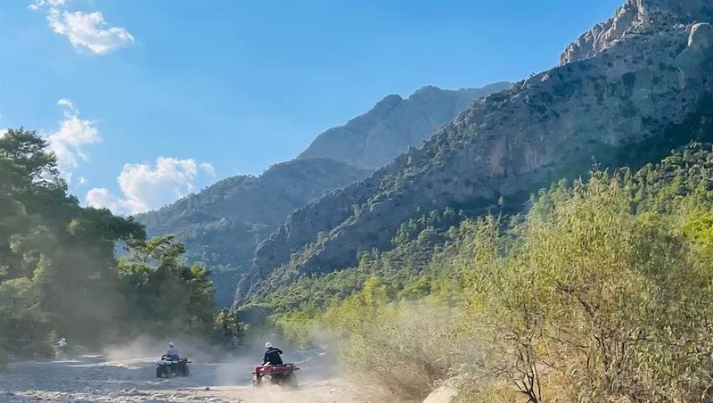 During the Kemer buggy safari tour, there are breaks by the riverside, photo stops, and optional swimming and cooling-off breaks for guests who wish. The total driving route is approximately 20 km, and depending on the driving pace, the safari lasts around 2 hours.