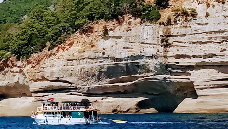 Kiriş Cave Bay is about 20 minutes by boat from Kemer Marina and gets its name from the two natural caves in the area. With a maximum depth of around 19 meters and different depth levels, this bay is suitable for both amateur and professional divers. Here, you can explore small underwater caves and tunnels and observe marine life such as crabs, octopus, mullets, and rockfish.