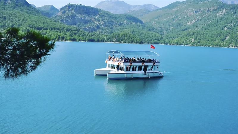 Экскурсия на корабле по Зеленому каньону из Белека - это спокойная и расслабляющая экскурсия на природу, который мы совершаем на плотине Оймапынар. Плотина Оймапынар находится примерно в 55 км от Белека и является одним из самых больших и высоких плотин Турции. Плотина Оймапынар и окружающие горы, поросшие соснами и кедрами, создают великолепную картину и отражения лес вокруг плотины Оймапынар на ее водах, выглядят гармонично зеленой, от этого пришло называние Зеленый каньон. Круиз на корабле по зеленому каньону составляет около 17 км и занимает 4 часа на плотине Оймапынар. У нас несколько раз бывают перерывы, где вы можете искупаться в прохладных водах плотины и попробовать порыбачить. Обед подается в ресторане для пикника с прекрасным видом, рядом с Зеленым каньоном. Мы рекомендуем тем, кто любит природу и спокойствие, проводящие свой отпуск в Белеке, не пропустить экскурсию на корабле по Зеленому каньону из Белека.